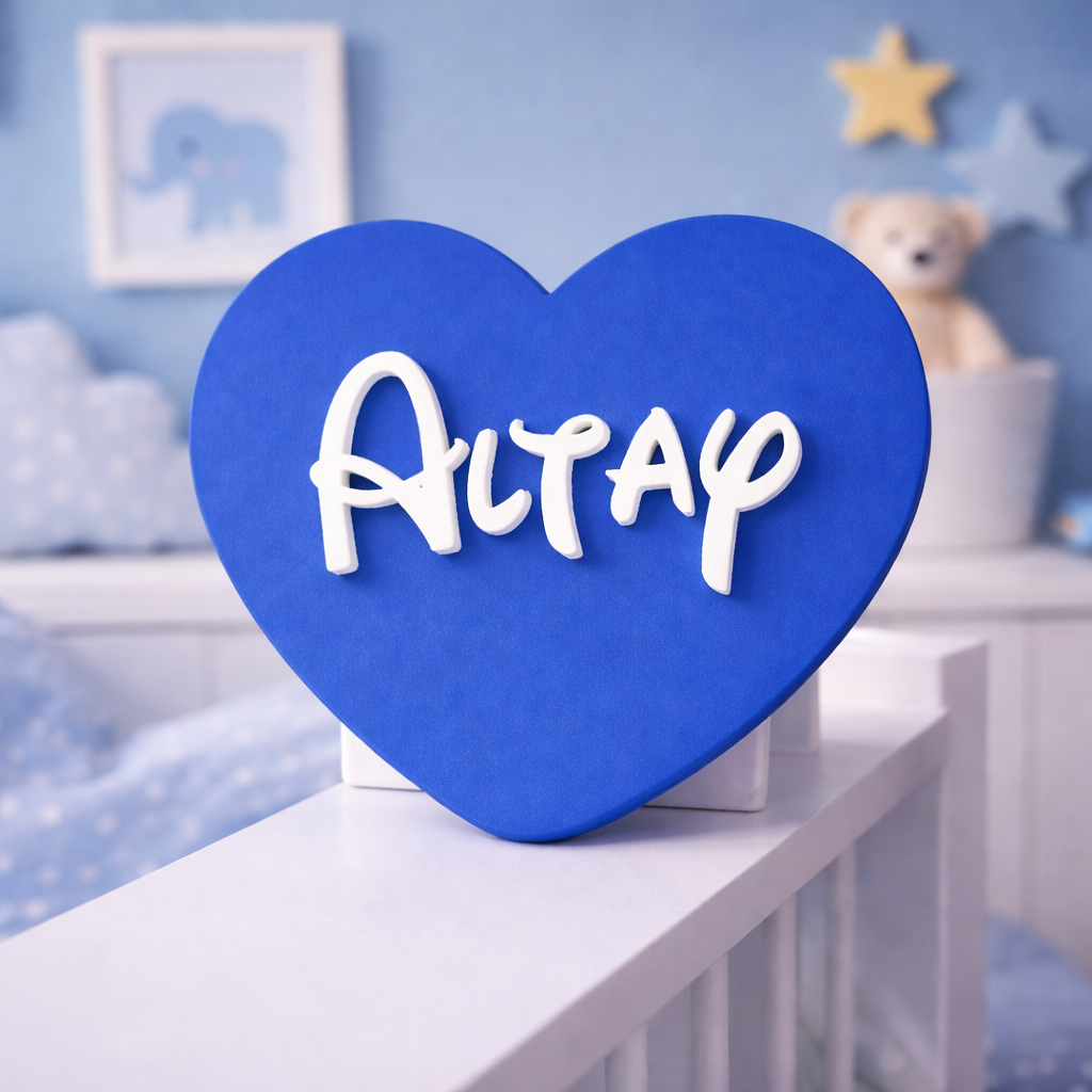 Personalisierbares 3D Herz Namensschild für Kinderzimmer